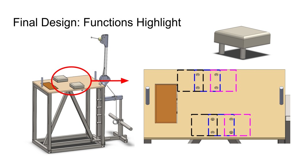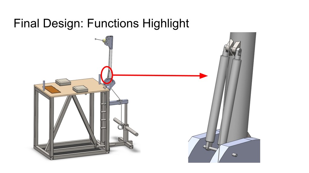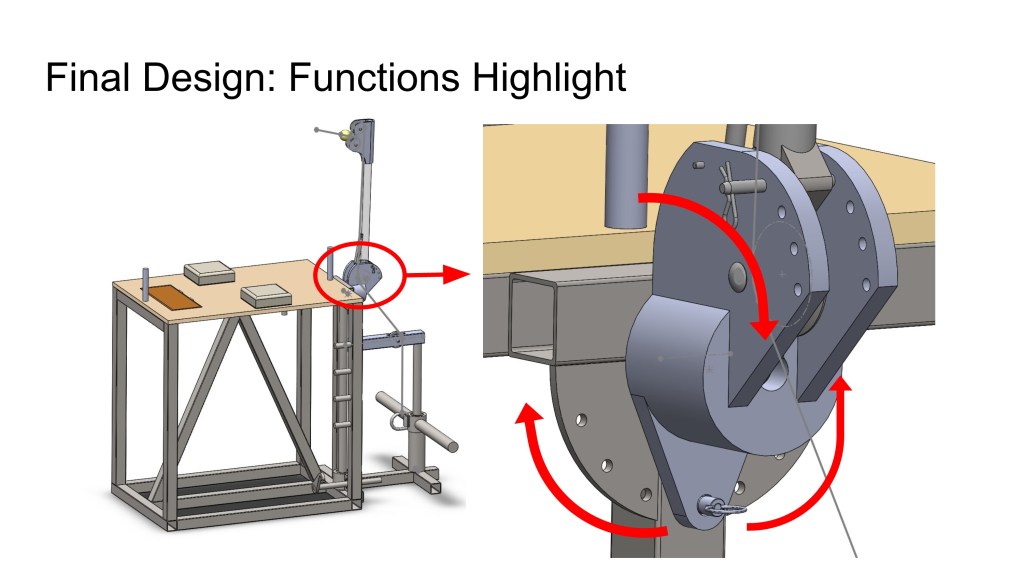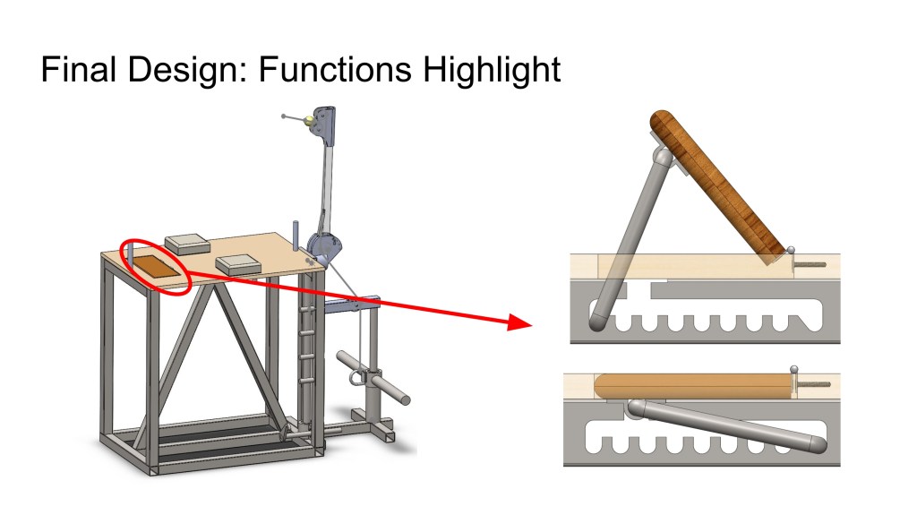 To design a product resembling a gym machine that would be compatible to arm-wrestling training, the sport of arm-wrestling itself, and exist in the commercial gym industry. And in doing so, justification of its concept would be upheld by the engineering concepts taught throughout the course. Our goals in the design are: